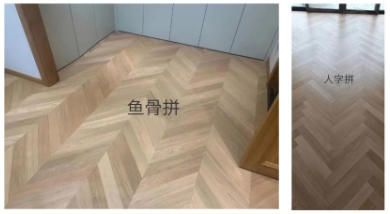鋪貼出來(lái)的形狀像魚(yú)骨。拼貼尺寸較多,拼貼角度有45度角和60度角。