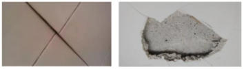 ■鋪貼瓷磚未留縫或縫隙過細;瓷磚粘結(jié)劑批刮不均勻;瓷磚鋪貼后未用力按壓瓷磚或者用力不均,排氣不充分,沒有形成有效粘貼。